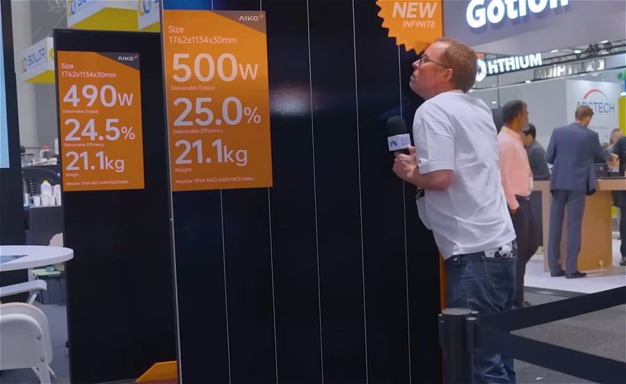 Finn’s pick of the solar panels was the 500-Watt Aiko Infinite Neostar; suitable for residential rooftops.