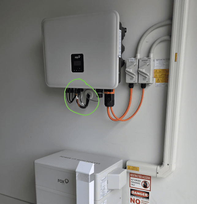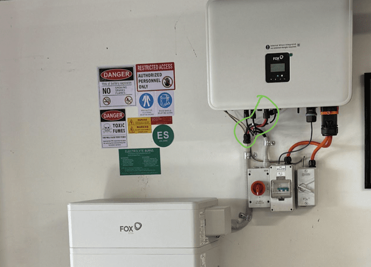 Not compliant – battery DC cable is visible. Unlike solar DC no exposed battery DC cable is allowed. Don’t get me started on the stickers…