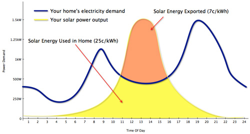 For a typical household who is not home during the day, that can be half or more of your solar energy that is getting the miserly 7c per kWh:
