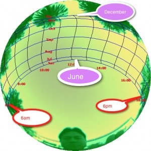 I wonder if the bottom line should be labelled “June” rather than January, as presumably the line the sun takes ‘peaks’ in December, then starts to track back ‘down’ the image.