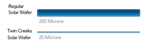 The key is that the material used for the wafer is extremely thin yet durable. There is little wastage. As the company press release makes clear, the Twin Creeks’ technology, known as Hyperion, allows solar cell manufacturers to: