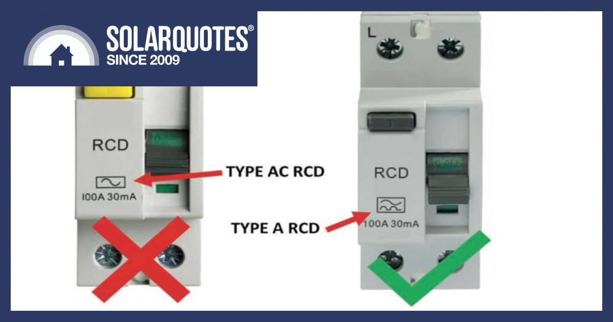 Here we’ve superimposed a hybrid solar inverter to show partial home backup. Arrowed in blue, TWO downstream circuits, have Type A RCBOs. The single RCD would be grandfathered as compliant last century.